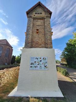 Ein Trafoturm zu einem Vogelturm umzugestalten ist keine neue Idee, doch Bürgermeister Sieghard Dörge beweist, dass engagierte Mitstreiter notwendig sind, um Visionen Wirklichkeit werden zu lassen. Seit Mai steht nun in Tempzin, in Sichtweite der Kirche, ein solcher Turm mit Nistkästen und Hohlräumen für Schleiereule, Meise & Co. sowie Fledermausbrettern.