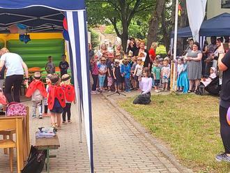 Eröffnet wurde der Tag mit einer Ansprache durch die Kita Leitung. Anschließend führten die verschiedenen Altersgruppen der Kita ein buntes Programm auf, es wurde gesungen und getanzt sowie kleine Verse aufgesagt. Herr Schwertner, verkleidet als spaßiger Clown, formte tolle Figuren aus Ballons und zauberte den Kindern damit ein lächeln aufs Gesicht. Unsere Senioren hatten an dem Tag mal eine etwas andere Aufgabe. Um aktiv bei dem Fest mitwirken zu können, kam der Elternrat auf eine schöne Idee. Die Kinder hatten die Möglichkeit, 5 spielerische Stationen abzulaufen (Sack hüpfen, Eier laufen, Ring Wurf, Enten angeln und Bälle werfen). Bei jeder Station bekamen sie bei dem absolvieren des Spiels einen Stempel.