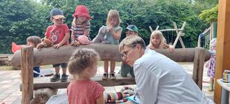 Alle Kinder hatten von zu Hause ihre Lieblingskuscheltiere und ihre Lieblingspuppen mitgebracht, die in der „Teddyklinik“ verarztet wurden. Jedes Kind wurde aus einem nachgebauten Wartezimmer aufgerufen und konnte der Arzthelferin erklären, welche Beschwerden es gab. Danach ging es weiter zu „Frau Puppendoktor“ Carmen, die die kleinen Lieblinge mit Pflastern oder einem Verband versorgte. Es wurde auch Fieber gemessen und alles gründlich untersucht. Bei dem Kuscheltier von Fiete war es sogar so schlimm, dass er gleich in den Rettungswagen zur weiteren ärztlichen Versorgung gehen durfte.