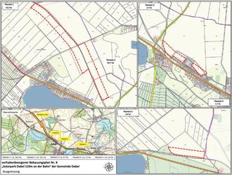 | • | Planteil 1 mit einer Fläche von ca. 14,3 ha erstreckt sich auf Teilflächen der Flurstücke 90, 91, 92, 94, 95 und 99 der Flur 3 in der Gemarkung Dabel. |