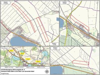 | • | Planteil 3 mit einer Fläche von ca. 6,9 ha erstreckt sich auf Teilflächen der Flurstücke 24, 25, 27 und 33 der Flur 6 in der Gemarkung Dabel. |
