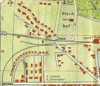 Karte vor 1891 zeigt: die Schule, Kreidebruch Lenz, Kreideseilbahn und die Kate