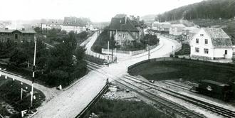 An ds. Stelle unterquerte die Kreideseilbahn die Merkelstraße