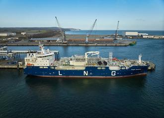 Der Umschlag von flüssigem Gas in Port Mukran durch Deutschlands ersten „Schiff-zu-Truck“-Verladung unterscheidet sich von einer ReGas Station vor der Küste der Insel.