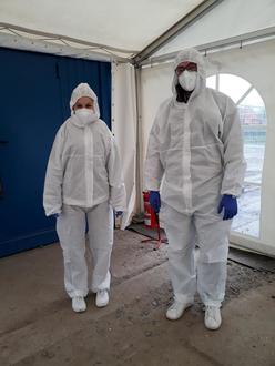 Wer selber schon einen Nasenabstrich über sich ergehen lassen musste, weiß, dass es angenehmere Dinge gibt und mancher kann sich sicher des Gedankens nicht erwehren: Na, hoffentlich geht das gut! Aber - die Leute machen ihre Sache wirklich gut! Alle haben für einen Tag einen DRK-Kurs absolviert und wissen, was sie beachten müssen und was wichtig ist. Meine persönliche Erfahrung: Die jungen Leute sind freundlich, entgegenkommend und vor allem auch sehr einfühlsam. Man muss nicht aus dem Auto steigen, kann sich dort sicher fühlen, denn die Tester tragen Maske und Schutzkleidung, ja, man muss nicht einmal selbst das Formular ausfüllen! Einfacher geht es nicht! Stellvertretend für die vielen Ehrenamtlichen, die dort Dienst tun, sollen hier vier Namen genannt werden - Aline Rudolph, David Klockzien, Lukas Krabbe und Analena Springer.