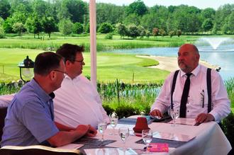 Personen von links nach rechts: Andreas Rösemeier (Referent für Marketing & Sales im Golfpark Strelasund und Bearbeiter des Fördermittelantrags); Jörg Remer (Geschäftsführer Golfpark Strelasund); Harry Glawe (Minister für Wirtschaft, Arbeit und Gesundheit MV)
