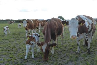 Im Mai kam dann endlich der Tag, an dem es auf die Koppel gehen sollte. Die Mutterkühe kennen sich ja aus. Wenn irgendwann ein Klopfen vom Koppelbauen zu hören ist, geht es bald los. Dann wächst die Aufregung, das Muhen wird lauter: „Wann geht es nur endlich raus!?“ Raus aus dem ollen Stall und ab ins Grüne. Das ist dann für Mensch und Tier immer ein Kraftakt, bis jeder dort ist, wo er hin soll. Aber dann kehrt für die Kühe nach den ersten Fressen erstmal Ruhe ein. Die Kälbchen allerdings genießen die unbekannte Freiheit. Sie rennen und springen herum, dass es eine Freude ist. Sie beschnuppern Gras und Blätter und müssen erstmal den Zaun erkunden. Bloß nicht drankommen. Aber dann: Friede, Freude, Eierkuchen.