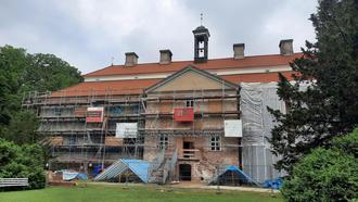 Die Vorarbeiten zum Malern erfolgen auch schon. Die alten Tapeten müssen vorsichtig abgelöst werden, um eventuell darunter liegende Zeitzeugnisse (historische Farben und Wandmalereien) nicht zu zerstören.