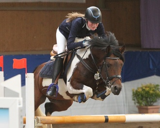 Das Lewitzer auch gut springen können, beweist der gekörte Hengst Odin (v Olli T), auf dem Foto elfjährig unter Janna Pierstorff. © Jutta Wego