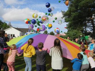 Nach dem Auffüllen der Energietanks konnten die Kinder nun wieder die Hüpfburg besetzen, Seifenblasen in den Himmel schicken, ihre Gesichter bunt anmalen lassen und am Basteltisch kreativ werkeln.