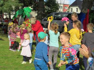 Dann begann das lustig bunte und fröhlich lehrreiche Mitmachprogramm von Lilli Wünschebaum. Vorbei an Palmen, Giraffen und Elefanten erlebten die Kinder und Eltern den Kontinent Afrika auf spielerische Art. Wenn man so will - eine Aktivsafari durch die Süderholzer Savanne.