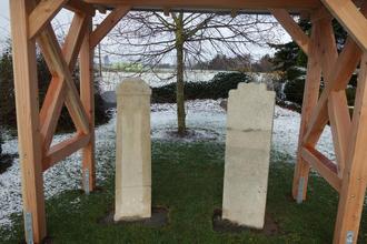 Beide Grabsteine wurden bei Reparaturarbeiten an der Friedhofsmauer, höchstwahrscheinlich im Jahr 1991, geborgen.
