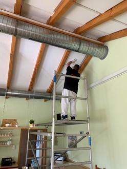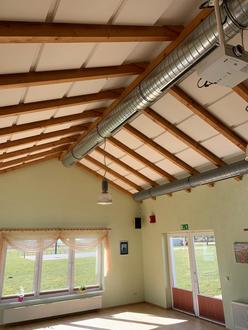 Diese wurde in den letzten Tagen unter Anleitung von Profis der Firma „Maler Sternberg“ angebracht. Gemeinsam mit Maiko Sternberg und Stephan Meinke, die einen Urlaubstag opferten, haben Mitglieder des Dorfvereins die Ecophon-Platten montiert.