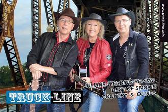 In ihrer Stammbesetzung (Trio - Kerstin_f, Onkel BO und Mister K.) ist „TRUCK-LINE“ ganzjährig unterwegs. Die Band bringt im Konzert neben Country und Oldies auch ihre eigenen Songs zu Gehör. Mit dem Projekt „JULIANE-WERDING-REVIVAL & BEST OF SMOKIE“ präsentieren sie aktuell das Programm „Sehnsucht“, als ein besonderes Highlight für alle Fans der 70/80er Jahre. Es darf auch getanzt werden.