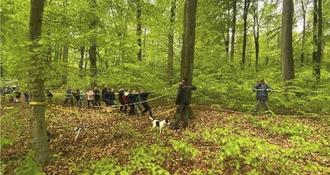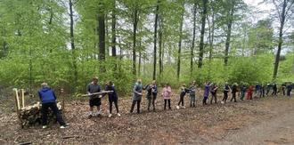 Dabei galt es nicht nur Tiere und Bäume des Waldes richtig zu bestimmen, sondern auch Teamgeist unter Beweis zu stellen. Beim Weitsprung mussten die Kinder gemeinsam so weit wie Eichhörnchen oder Waldhasen springen, damit am Ende genügend Punkte in Form von kleinen Holzdübeln eingesammelt werden konnten. Auch erste Forstarbeiten wurden zusammen absolviert. Hierbei sollten die Kinder an einer weiteren Station mit Hilfe verschiedenster Techniken beweisen, dass sie fähig sind, einhundert Holzstämme zügig und geschickt zu einem ordnungsgemäßen Holzstapel aufzubauen.