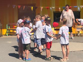 Die kleinen Vorschüler tobten weiter auf einer Hüpfburg und spielten mit den Eltern und Geschwistern. Sie zeigten auch stolz ihren Kindergarten, den sie nun verlassen werden. Hier und da sah man dann auch ein oder zwei traurige Gesichter, denn leider werden die Kleinen nicht alle zusammen in eine Klasse oder gar Schule kommen. Diese waren aber schnell wieder verflogen, denn es sollte ja gefeiert,gespielt, getanzt und gelacht werden.