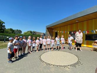 ...dieses Lied hörte man am 24.06.2022 auf dem Gelände der Kita Hummelnest in Kandelin. Die Sonne schien hell und warm, als die 14 Vorschulkinder vor lauter Freude und Aufregung mit ihr um die Wette strahlten.