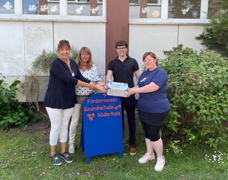 v.l.n.r.: Annemarie Noack und Anne Lomber (Förderverein Grundschule Süderholz), Georg Günther und Manuela Schöler (Junge Union Vorpommern-Rügen)