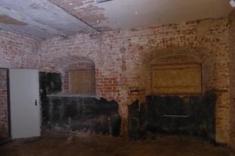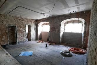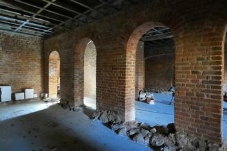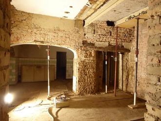 Nehmen wir als erstes den ehemaligen Heizungskeller. Hier sind herrliche Mauerbögen zum Vorschein gekommen. In diesem Raum werden jetzt die Toiletten installiert (neben den Toiletten für die Besucher, einschließlich behinderten gerechter Toiletten, entstehen hier auch Personaltoiletten).