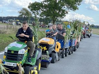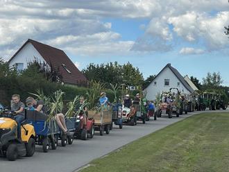 Erstaunenswert war die Teilnahme an dem traditionellen Festumzug, der immer mehr bei den Jüngeren an Popularität gewinnt. Viele junge und noch jüngere Einwohner zogen mit ihren geschmückten Rasenmähertreckern in Kolonne durch die Straßen. Angefangen vom Reiter über Kutschen, historischen sowie modernen Landwirtschaftsmaschinen, wilden Buggys oder einem Tieflader voller Schalmeienmusiker - alle hatten sichtlich Spaß während des Umzuges. Die Feuerwehren der Gemeinde Süderholz waren nicht nur als rote Farbkleckse mittendrin, sondern beobachteten nebenher die Sicherheit. Über vierzig Startnummern wurden vergeben, die für die spätere Verlosung auf der Festwiese von Bedeutung waren. Eisgutscheine wurden verteilt, auf dem Sammelplatz auch noch gebastelt, weil so wunderbar viele Kinder am Umzug mitwirkten. Die Sektflaschen für den Fahrer (bzw. Beifahrer) haben bei weitem nicht gereicht, was jedoch für die Mitmachenden nicht das Problem war. Denn einzig und allein die Freude, dabei zu sein, überwog.
