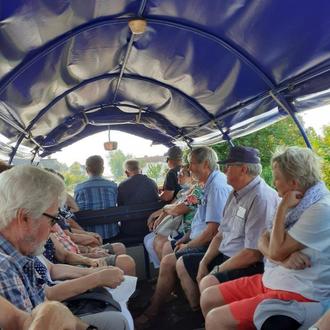 Die Organisation des Ausflugs lag in den Händen von Herrn Hübl (Volkssolidarität Grimmen) und dem Veranstalter Becker - Strelitz- Reisen, so dass wir gegen 8.30 Uhr ganz entspannt mit dem Bus in Richtung Hafen Stralsund starten konnten. Die Fähre war gut gefüllt und wir schipperten ca. 2 ½ Stunden übers kinderpopoglatte Wasser. In Vitte gingen wir von Bord und enterten die beiden bereitstehenden Kremser. Der eine Kutscher unterhielt seine Fahrgäste bestens, der andere hatte offensichtlich nicht seinen besten Tag und war in keiner Weise ein Aushängeschild für den Umgang mit Gästen der Insel. Nichtsdestotrotz sahen wir die wichtigsten Einrichtungen in Vitte - sozusagen dem Zentrum - wie Schule, Kindergarten, Post, Polizei oder Ärztehaus. Außerdem gepflegte Häuser, Hotels, Pensionen und Ferienhäuser. Den Weg nach Kloster teilten wir uns mit unzähligen Wanderern und Fahrrädern mit oder ohne Antrieb bzw. mit oder ohne Anhänger - Wahnsinn! Die Landschaft wirkt wild (der Mensch darf nur bedingt eingreifen, da Naturschutzgebiet) und die Trockenheit des Sommers war nicht zu übersehen. Übrigens, auch auf Hiddensee hat das Sanddornsterben eingesetzt.