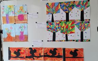 Nach unserer reichlichen Apfelernte standen nun über 150 Saftkartons bereit und sollten am 9. November den Besitzer wechseln. Der Schulförderverein lud an diesem Tag zum Saftverkauf ein. Viele Eltern nutzten die Gelegenheit und so konnte die Hälfte unseres Apfelsaftes an den Mann oder die Frau gebracht werden. Außerdem erwartete die Besucher noch eine kleine Überraschung in Form einer Kunstausstellung, die Frau Albroscheit liebevoll vorbereitete. Die im Kunstunterricht und im Angebot entstandenen tollen Bilder erfreuten sich großer Bewunderung. Und im nächsten Jahr soll es dann auch einen Kalender mit Kinderzeichnungen geben.