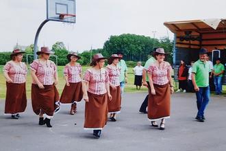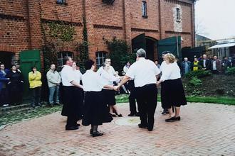 War unser erster öffentlicher Auftritt bei einem Hoffest in der Hammerscheune noch recht kurz, haben wir in der zurückliegenden Zeit viele Tänze dazugelernt. So sind unsere Auftritte jetzt in drei Abschnitte geteilt, zu denen wir auch die Garderobe der Tanzrichtung anpassen.