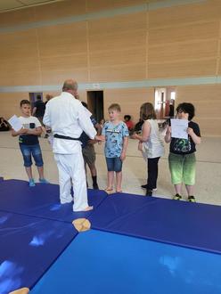 In der Turnhalle ging es sportlich zur Sache. Dort legten einige Schüler die Judoprüfung ab. Sie hatten sich mit Unterstützung von Herrn Wessel im Rahmen der Vollen Halbtagsschule fleißig darauf vorbereitet. Nun konnten sie zeigen, was sie gelernt hatten. Alle waren aufgeregt, schafften aber die Prüfung und waren stolz auf ihren Erfolg.