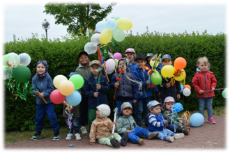 Zurück in der Kita wurden alle mit lustiger Musik, Seifenblasen, bunter Kreide, Geschicklichkeitsspielen und leckerer Bratwurst empfangen.