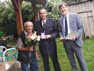 Ehrenmitglied Paul Unger, Gemeindewehrführer Stefan Steinke, Bürgermeister Alexander Benkert (v. l.)