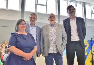 Riesebys Bürgermeisterin Doris Rothe-Pöhls, der Amtsdirektor des Amtes Schlei-Ostsee Gunnar Bock, der Vorsitzende des Dorfwochenausschusses Hartmut Schmidt und der Süderholzer Bürgermeister Alexander Benkert (v. l.)