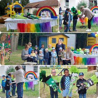 Gemeinsam mit allen Kindern und Gästen begann der Nachmittag mit einem kleinen Programm. Unsere 3 Vorschulkinder Eleazar, Julien und Levi wurden durch unsere Gemeindepädagogin Jeannette gesegnet und erhielten im Anschluss ihre Schultüten. Abschließend folgte ein gemütliches Beisammensein, Kinderschminken sowie ganz viel Spiel und Spaß auf dem Kitahof.