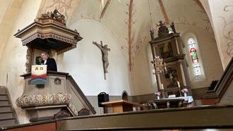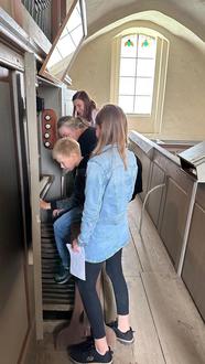 Anschließend gab es das Angebot, einer klassischen Kirchenführung zu folgen, die Johannes Soeder führte und gut angenommen wurde. Die jüngsten Kirchenbesucher aus dem Ort beteiligten sich an einer Schnitzeljagd durch das alte Gebäude. Sie führte von einer entlegenen Ecke in der Sakristei bis hinauf zur Glocke unterm Turmdach. Schlussendlich begutachteten sie die Orgel und bunt aneinandergereihte Töne erhellten das Schiff.
