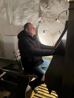 Zwischen den Programmteilen spielte Wilfried Koball an der Orgel Stücke von Bach, Rheinberger und Dvorak.