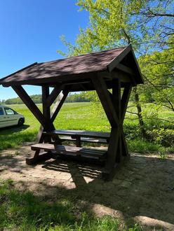 Ein neues Rasthäuschen gibt es an alter Stelle: auf dem Weg von Willershusen nach Horst, am Waldrand vor dem Burgwall.
