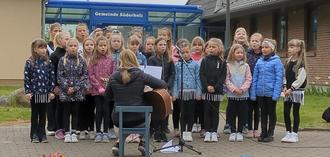 Mit diesem Lied traten Kinder der Grundschule Süderholz beim Gemeindejubiläum in Poggendorf auf.