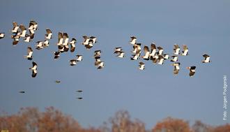 Ein Kiebitz kommt selten allein: In der vergangenen Brutzeit gab es bei den Kiebitzen so einiges zu beobachten, wie etwa die spektakulären Balzflüge der Männchen über den Brutrevieren. Im Spätsommer und Herbst können wir Kiebitzschwärme in der Boddenlandschaft, auf Stoppelfeldern und Wiesen entdecken, denn sie unterbrechen ihre Reise unterwegs und ruhen sich für den Weiterzug aus. Winterquartiere der Kiebitze sind der milde Westen und Südwesten Europas.