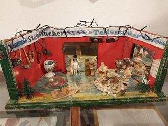 Gemütlich war`s am Kachelofen, mit Sekt und Essen. Viele Besucher waren gekommen, die diese „kleinen Schätze“ an vergangene Zeiten erinnerten und wirklich ein Lächeln ins Gesicht zauberten, so wie es auf der Ankündigung stand. „Oh ja, das kommt mir bekannt vor, das hatten wir auch mal.“ Zu sehen sind kleine Figuren, alte Knöpfe, bunte Stifte, Stickereien, alte Schriftstücke, Kettchen, Steine, Muscheln, Weihnachtsfigürchen und, und, und. Alles „verpackt“ in kleinen Kästen. Schön!