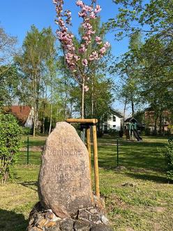 Die blühende japanische Kirsche am alten Gedenkstein „für die deutsche Bauernschaft“ fällt in den Blick, wenn man den Ortseingang von Kreutzmannshagen passiert. Sie steht noch nicht so lange da. Ebenso die neuen Spielgeräte auf dem Spielplatz am Dreiangel, der von den jüngsten Dorfbewohnern und deren Eltern gut angenommen wird und welcher nun um Kletterturm und Rutsche bereichert wurde. Ein Dank an die Initiatoren und die Beschäftigten vom Süderholzer Bauhof, die für diesen gastlichen Flecken vor Ort gesorgt haben und sorgen!