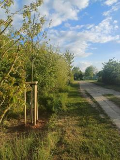 Die Bäume haben einen Verbissschutz erhalten und werden nun regelmäßig gegossen. Darüber hinaus wird der Verein sich auch um die Baumpflege der Bestandsbäume kümmern, die einen echten Pflegeschnitt bekommen, um das dort notwendige Lichtraumprofil einzuhalten.