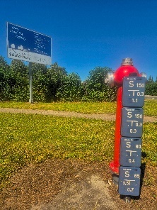 Damit man sie schnell findet, werden Hydranten oft mit Schildern markiert, z. B. mit Entfernungsangaben. Das erleichtert den Feuerwehrleuten die Löscharbeiten enorm. Außerdem sind alle Hydranten in einem Plan der Feuerwehr eingetragen. Was bedeuten die Zeichen auf dem Schild?