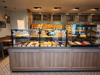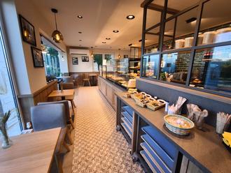 Fünf Tische mit Sitzgelegenheit laden nun zum Imbiss ein. An der neu gefliesten Rückwand ist auf großen Tafeln zu lesen, was im Angebot ist. Alte Fotografien erinnern an die Anfänge des Bäckereibetriebes.