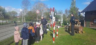 Zuerst ging es in Richtung Bahnhof, dort wurde mit den Kindern über das Verhalten am Bahnhof gesprochen und auf verschiedene Linien, Schilder und den Sicherheitsabstand zum Zug aufmerksam gemacht und besprochen.