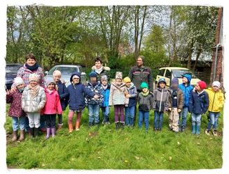 2024 ist der Baum des Jahres ein sogenannter Zukunftsbaum. Irgendwie passend für unsere 1. Klasse, die ab jetzt als Pate für die „Echte Mehlbeere“ verantwortlich ist. Die Mehlbeere ist in Mecklenburg Vorpommern nicht sehr weit verbreitet. Wir wollen dazu beitragen, dass sich das ändert. Mit Förster Kupatz, einem Spaten und gleich zwei kleinen Mehlbeere-Bäumchen geht es raus auf den Schulhof. Abwechselnd werden zwei tiefe Löcher in die Erde gegraben und die Mehlbeeren hineingesetzt. Abschließend bekommen sie noch einen Schutz und schon können wir uns stolz neben unseren Zukunftsbäumen fotografieren lassen.