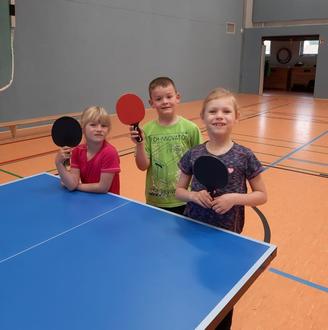 Der Feiertag für unsere Kinder muss natürlich entsprechend gewürdigt werden und somit stand am 1. Juni ein buntes Kinderfest mit sportlichen, spielerischen und spaßigen Stationen an. In unseren Turnhallen wurden Tischtennis und Badminton vom Tessiner Sportverein angeboten, der Landesturnverband ermöglichte den Kindern zudem, auf einer Airtrackbahn verschiedene Übungen auszuführen. Auf dem Sportplatz erhielten wir Unterstützung von den Klassen 5b und 9b, die u.a. zum Hockey, Stiefelweitwurf, Sackhüpfen, Dosenwerfen und Würfel-Laufspiel einluden. Kreatives Gestalten mit Fadengraphik und einer Wachsmaltechnik war mit der Klasse 9a im Werkraum möglich. Auf dem Schulhof wiederum konnte ausgelassen in einer Hüpfburg getobt werden. Als Stärkung und kleine Zwischenmahlzeit neben dem Frühstück gab es im Außenbereich der Mensa für jedes Kind noch ein Wiener Würstchen mit Brot.