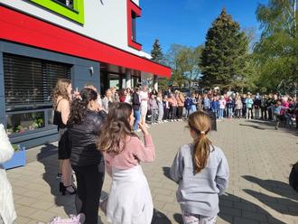 Aber nicht nur das Verkleiden gehörte zu unserer Mottowoche dazu sondern auch das tägliche „Programm“ auf dem Schulhof. Wir sind jeden Tag in den Pausen auf beide Schulhöfe gegangen und haben laute Musik gespielt und mit den jüngeren Schüler/ innen getanzt und gelacht.