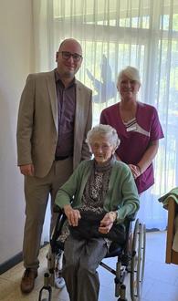Ganz besonders freute mich der Besuch bei Frau Fiedler, am 18.05.2025 feierte Frau Fiedler Ihren 102. Geburtstag. Als Bürgermeister der Blumenstadt Tessin konnte ich persönlich die Glückwünsche überreichen.