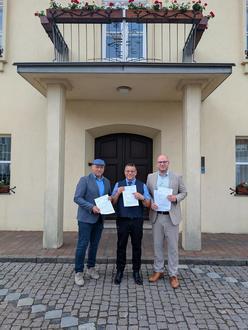 Als Bürgermeister konnte ich einen Zuwendungsbescheid an den Geschäftsführer, Herrn Radel sowie an den Aufsichtsratsvorsitzenden der TWG, Herrn Töpper überreichen.