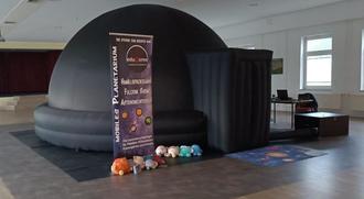 Große Augen machten die Schüler, als mitten im Volksparksaal eine schwarze aufblasbare Kuppel vor ihnen stand. Dort wurde in der ersten Novemberwoche das mobile Planetarium aufgebaut – ein Kino der besonderen Art.