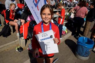 Der Sonntag stand ganz im Zeichen der jüngsten Athletinnen und Athleten. In der Altersklasse 10 der Mädchen hatte der Verein mehrere Eisen im Feuer. Milla Puhlmann lief über 800m ein tolles Rennen und schrammte um eine halbe Sekunde an Gold vorbei. 2:56,92 min. bedeuteten Silber! Silber auch für Henrike Assmus im Weitsprung (64 Teilnehmerinnen!) und Silber für Henni Barsties im Ballwurf! In diesem Wettbewerb gewann die erst 8-jährige Enie Siolek bei den teilweise zwei Jahre älteren Mädchen Bronze! Über 50m Hürden kamen Henni Barsties und Henrike Asmuss auf den Plätzen 5 und 6 ins Ziel. Im 50m Sprint dieser Altersklasse liefen Henrike Asmuss auf Platz3, Henni Barsties auf Platz 8 und Frieda Kremer (erst 9 Jahre alt) auf Platz 8. Den Erfolg komplementierten Enie Siolek, Milla Puhlmann und Eva Donner mit den Plätzen 11, 12 und 13 im B-Finale! Die 11-jährige Mayla Heumann konnte wieder unter Beweis stellen, dass sie weit werfen kann und gewann an diesem Tag die Silbermedaille. Auch die beiden 4x50m Staffeln der Wu 12 lieferten ab. Eva, Milla, Henni und Henrike belegten Platz 7, Mayla, Frieda, Lotta Kremer und Enie kamen als Achte ins Ziel. „Da freuen wir uns schon auf die kommenden Jahre, die meisten Mädchen waren viel jünger als ihre Konkurrentinnen!“ so Trainer Christian Donner, dem besonderer Dank für die Betreuung an beiden Tagen vor Ort gilt! Emmi Donner (12 Jahre) freute sich über ihren Sieg im B-Finale über 60m Hürden (Platz 9). Gleiches gelang der 13-jährigen Erna Miehlke über dieser Distanz. Im Weitsprung ihrer Altersklasse belegte sie Platz 5.